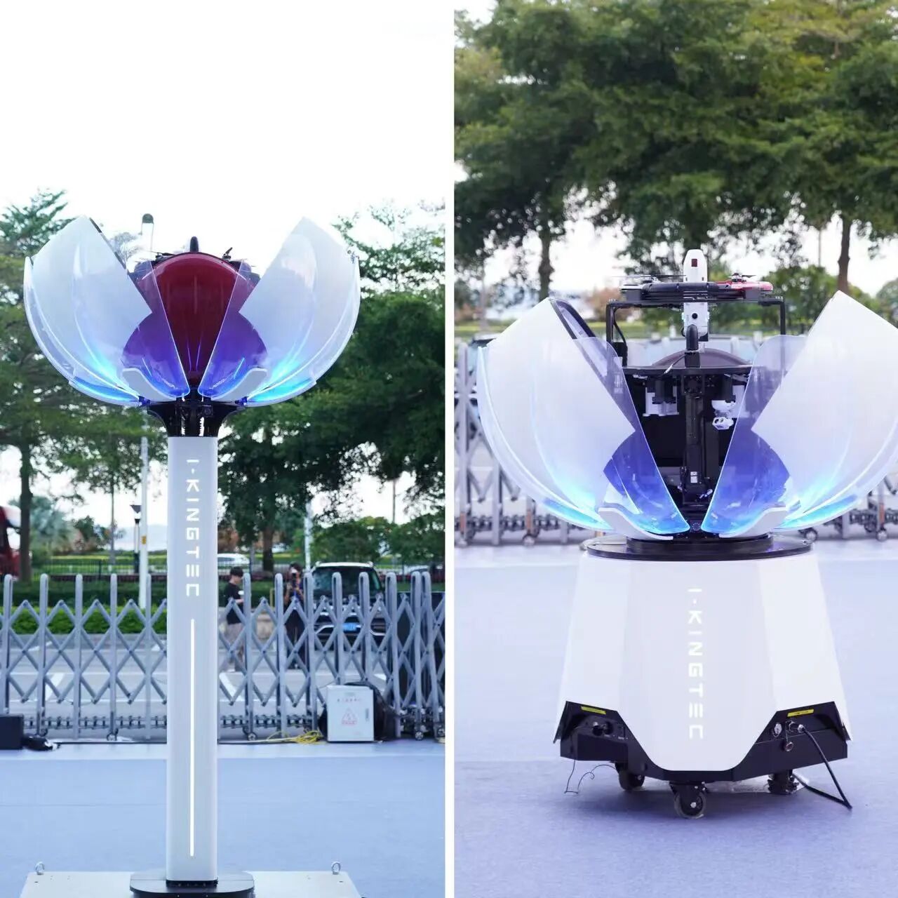 除了“圣·宝莲灯”全自主无人机巡检系统的实地飞行演示和空中喊话外,“圣·宝莲尊”全自主无人机巡检系统则现场演示了无人机自动更换电池和吊舱传感器的高精度操作,整个过程仅52秒,展现了无人机真正“无人化”连续作业的能力。